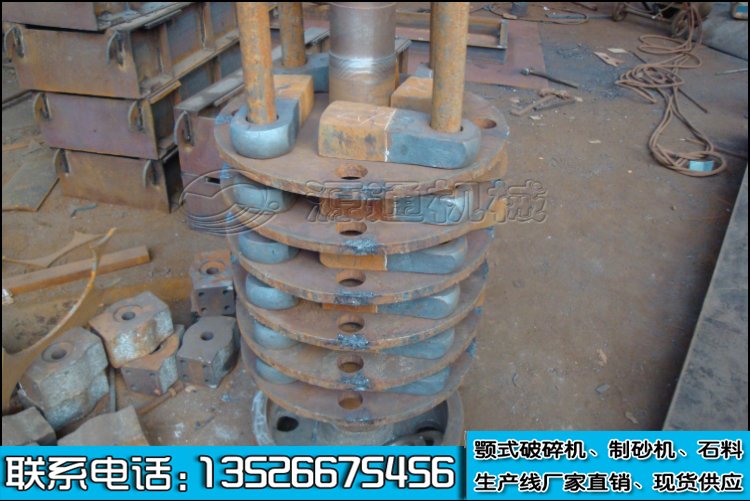 錘式破碎機(jī)由機(jī)殼、轉(zhuǎn)子、蓖條、打擊板、錘頭、支架、襯板等組成。